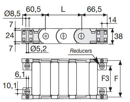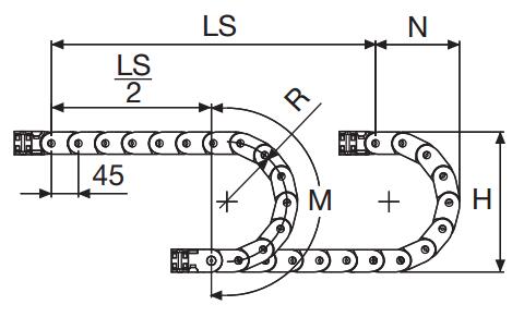 內部高 (D) 25 mm,尼龍拖鏈帶有大的中心抗磨銷軸的單鏈節結構,同樣抗扭抗拉??梢蕴峁┐怪钡姆指羝?/span>如果使用導向槽,這種拖鏈特別適合長行程應用。